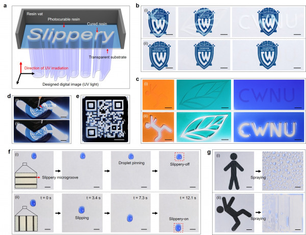 국립창원대학교 조영태 교수 연구팀이 빛을 활용해 물체의 부착력을 획기적으로 낮춘 표면을 개발하고, 액체가 움직이는데 저항이 거의 없는 3차원 미끄러운 구조체를 구현하는 데 성공했다. 이 연구 결과는 국제 학술지 ‘Nature Communications’에 2025년 10월 10일자로 게재됐다.(제목: ‘Digitally fabricated 3D slippery architectures for multifunctional liquid manipulation’, DOI: https://doi.org/10.1038/s41467-025-64078-7).