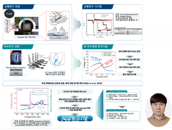 변도균 박사는 “거대 제백 효과는 현상 자체는 관측됐지만, 그 기작이 아직 명확히 규명되지 않은 난제”라며 “이 연구에서는 벌크 소재의 한계를 벗어나 박막 이중층 계면 구조를 활용해 비평형 전하 응답과 계면 전위의 역할을 분리하고 정량 분석할 계획”이라고 전했다. 이어 “이를 통해 기존 열전 소재 설계의 한계를 넘어서는 새로운 물리적 설계 원리를 제시하고자 한다”고 덧붙였다.